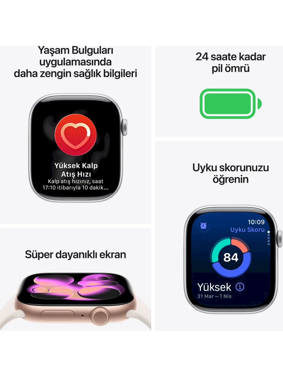Ürün özellikleriKameraYokGPS (Küresel Konumlama Sistemi)VarSesli GörüşmeYokSu GeçirmezlikVarUyku TakibiVarUyumlu MarkaAppleKalp Ritmi ÖlçmeVarTitreşimVarİşletim TürüiOSAdımsayarVarCinsiyetKadın, Erkek